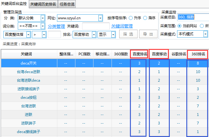 項目組接到項目之后,結合客戶的需求及公司對營銷型網站的制作要求進行綜合定位,分析出客戶產品的幾大優勢,并針對產品的客戶群體提出不同場景下的解決方案,通過資質證書及案例來體現公司實力,在關鍵詞定位方面,主要圍繞代理品牌deca來進行品牌詞拓展:如:臺灣deca進聯,進聯接線端子,進聯等,行業詞有歐式接線端子等。