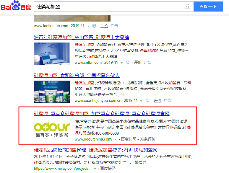 下圖為關鍵詞“硅藻泥加盟”排名截圖: